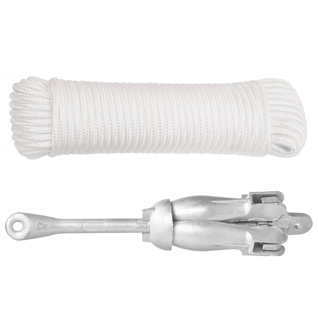 Folding Anchor with Rope Silver 13.2 lb Hot Dip Galvanized Cast Iron